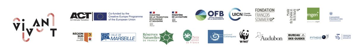Né sous l’impulsion du ministère de la Transition écologique et solidaire et de COAL, VIVANT est soutenu par de nombreux partenaires institutionnels : le ministère de la Culture, l’Union Européenne via le programme de coopération européenne ACT (Art Climate Transition), le comité français de l’UICN, l’Office français de la biodiversité, les Réserves Naturelles de France, les Parcs naturels régionaux de France, le Parc national des Calanques, la Région Sud, la Ville de Marseille, la Fondation François Sommer, le Musée de la Chasse et de la Nature, la MGEN, la National Audubon Society, le WWF, et le Bureau des guides du GR2013.