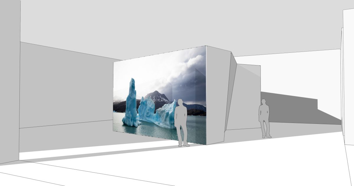 Angelika Markul cultive le souhait de filmer et sublimer dans une installation vidéo monumentale la disparition progressive du glacier de Tierra del Fuego. Cet archipel exceptionnel, constitué d’une île principale et d’une multitude de petits îlots, est situé à l’extrême sud du continent américain entre Argentine et Chili. Ce paysage disparaît, comme a disparu la civilisation amérindienne qui y vivait depuis douze mille ans, décimée par les Européens. Tierra del Fuego confronte l’extinction des civilisations et de leurs traditions au futur effacement des paysages causé par les bouleversements climatiques. Grâce à une manipulation numérique de l’image, l’artiste rend visible et accélère le processus de fonte du glacier, créant un nouveau paysage qui n’appartient qu’à l’esprit de celui qui le regarde. Cette sublimation du danger interpelle le spectateur avec pudeur, sensibilité et poésie. L’artiste convoque en parallèle une série de phénomènes et d’influences qui, ensemble, composent une symphonie de fin du monde : des dessins évoquant les traditions perdues des yagans et des alakalufs, ces pêcheurs nomades de Terre de Feu ; le mylodon, cet animal préhistorique endémique désormais disparu ; ou encore la Iluvia lenta (« pluie lente ») de la poètesse chilienne Gabriela Mistral, qui appelle à une nécessaire reconnexion avec la terre mère.