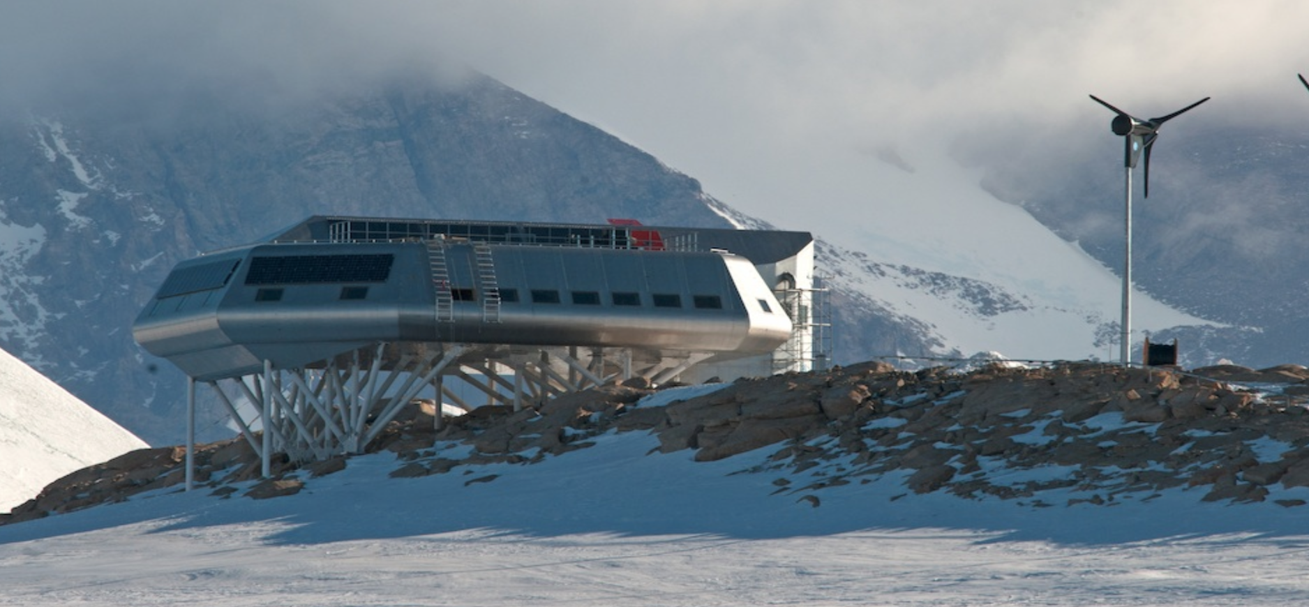 Princess Elisabeth Antarctica Conceived, designed, constructed and operated by the International Polar Foundation (Belgium), Princess Elisabeth is Antarctica’s first zero-emission station. Perched on a nunatuk, 200km from the coast, at an altitude of 1400m, the aerodynamic stainless steel structure can withstand strong Antarctic wind, and is layered so that no form of interior heating is needed. The station seamlessly integrates renewable wind and solar energy, water treatment facilities, passive building technologies and a smart grid for maximising energy efficiency.