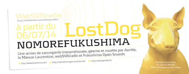 LostDog NomoreFukushima est une action de sauvegarde transnationale, géante et muette lancée le 11 février 2014 par Aurèle, la Maison Laurentine, webSYNradio et Fukushima Open Sounds.